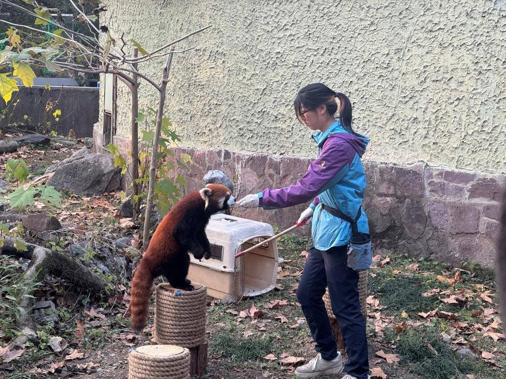 在小熊猫生态园,园方工作人员为代表团讲解小熊猫生活习性,并演示了日常的行为训练。台北市副市长林奕华接受媒体采访时表示,上海将送出两只小熊猫到台北动物园,台北则将向上海赠送一对黑脚企鹅。