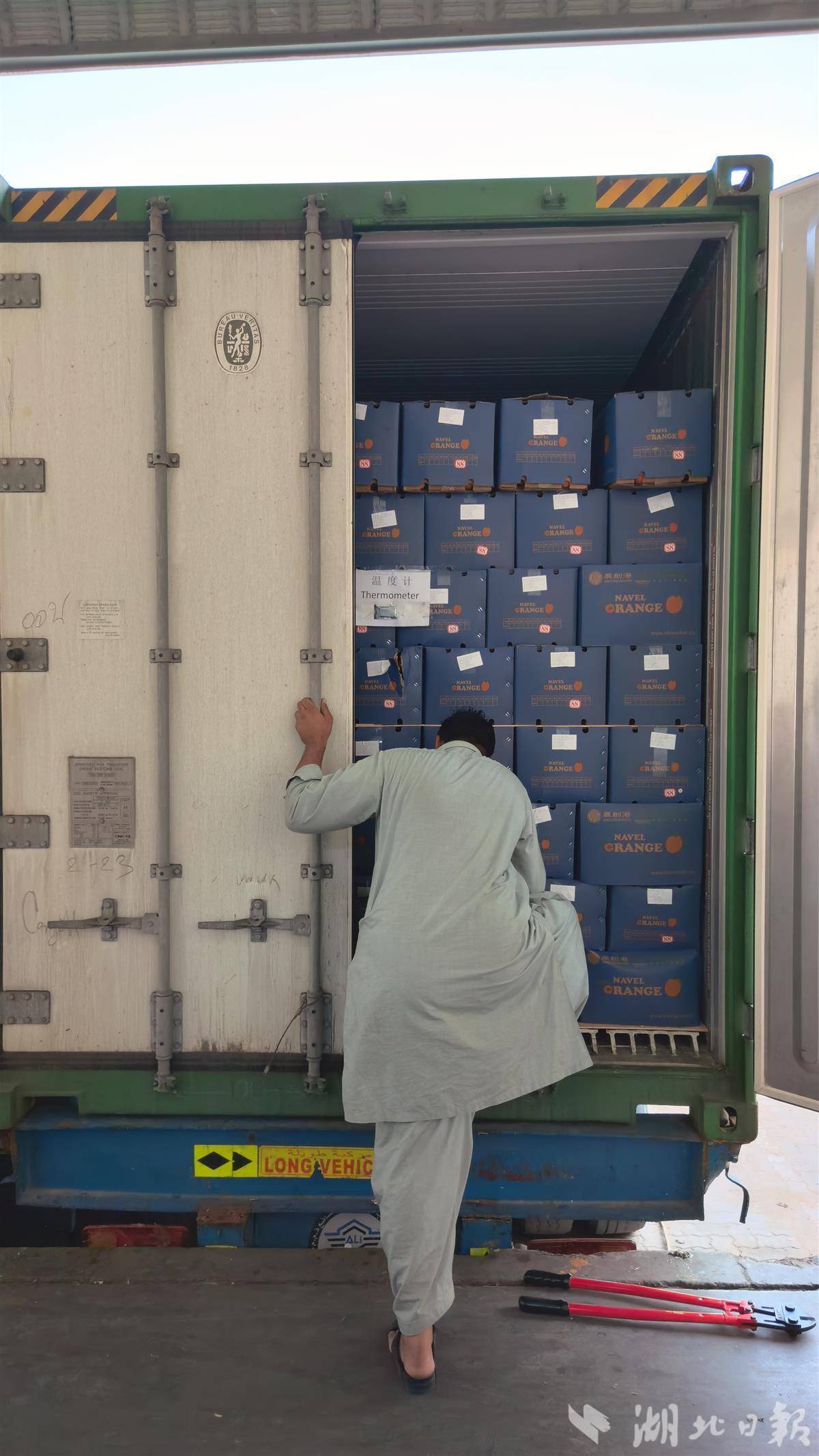 这批秭归脐橙,12月7日从中国破浪出海,历经18天全程冷链运输。12月24日晚,4个满载108吨秭归脐橙的集装箱抵达迪拜。经过海关审查、检疫查验,12月27日中午送达迪拜的Al Aweer中央果蔬市场。