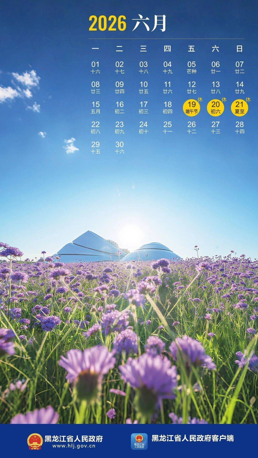 当2026年的晨光洒向龙江大地,冰封的江河孕育生机,广袤的黑土蕴藏暖意,新的一年焕然上新。我们准备了一份黑龙江专属日历,希望这份专属日历,陪你走过2026的龙江四季。