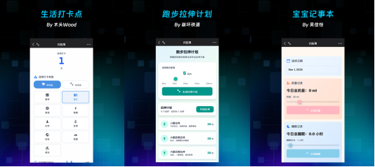 (图说:灵光用户创建的闪应用—生活打卡器、跑步拉伸计划、宝宝记事本)